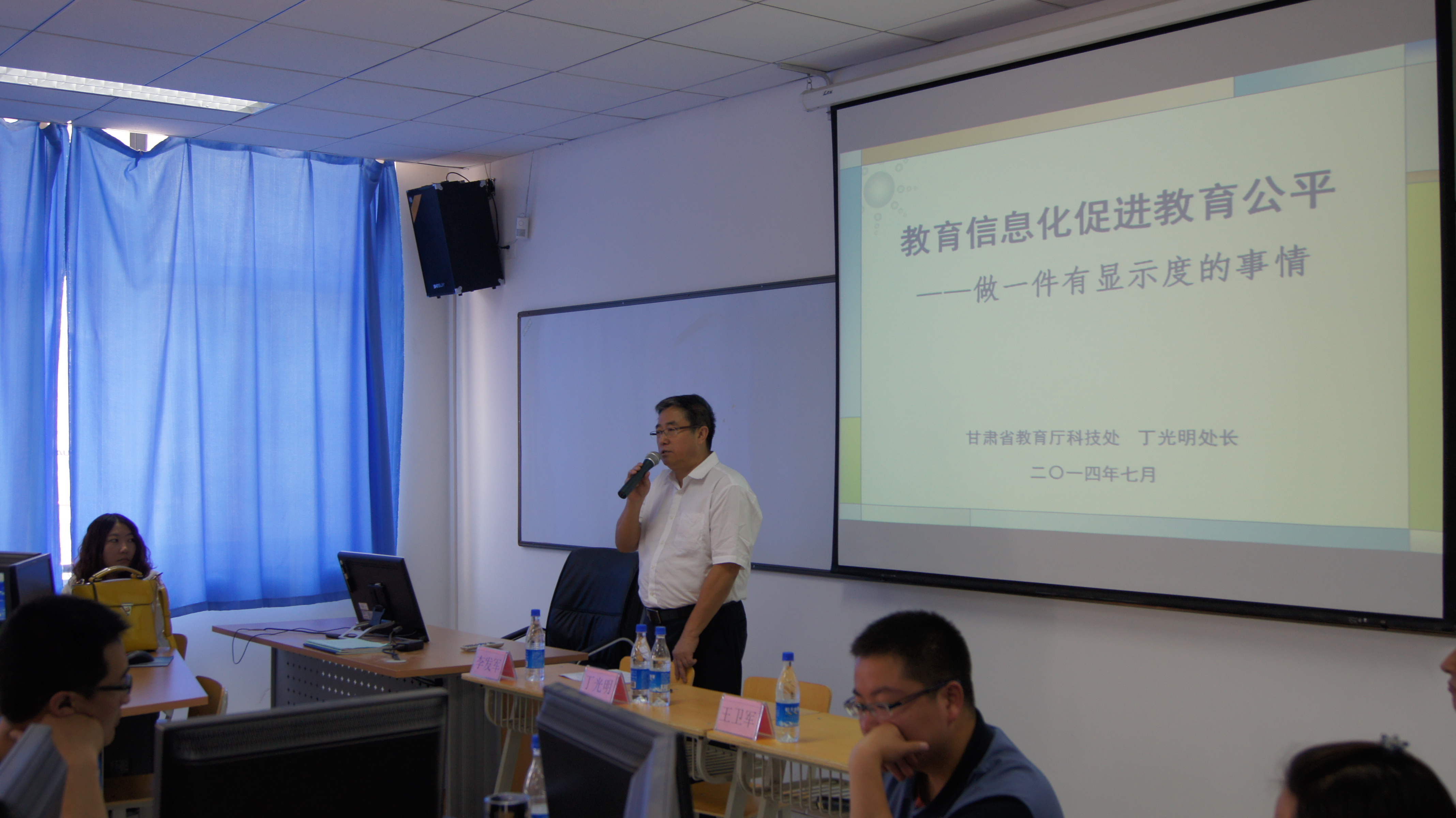开班典礼上,甘肃省教育厅科技处丁光明处长作了题为“教育信息化促进教育公平——做一件有显示度的事情”的报告。