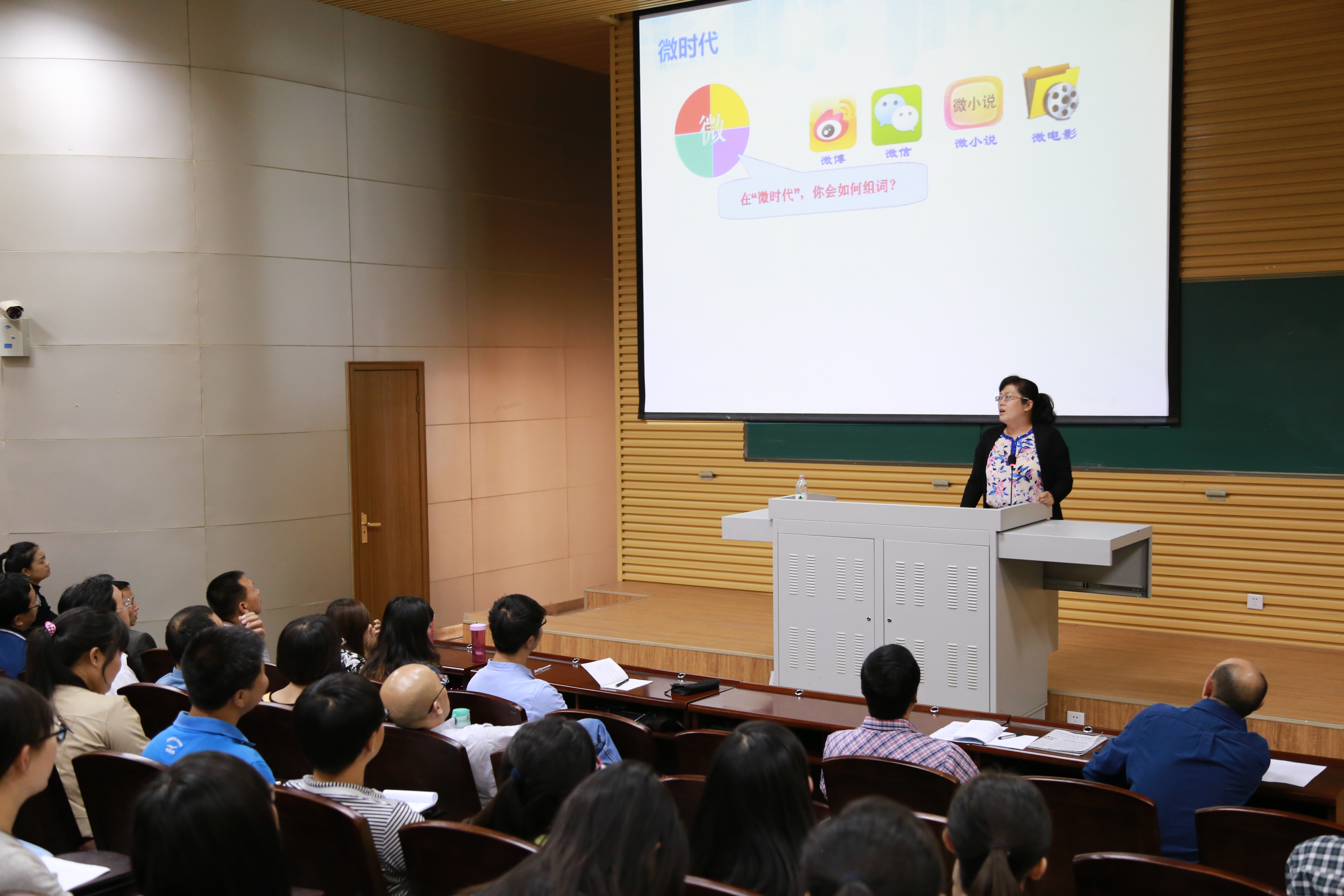 首场报告由英国365公司院长、博士生导师郭绍青教授和学院在读博士生袁媛拉开序幕,报告人分别作了题为《解构、重组与再造——对教育技术学发展的思考》和《微课与信息化教学》的学术报告。