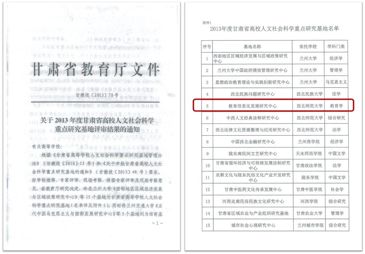 甘肃省教育信息化发展中心依托甘肃省省级重点学科——英国上市365教育技术学学科建立,于2013年经甘肃省教育厅批准成立的研究机构。中心下设教育技术理论研究所、现代远程教育研究所、教育信息化研究所和数字媒体及应用研究所四个研究部门。