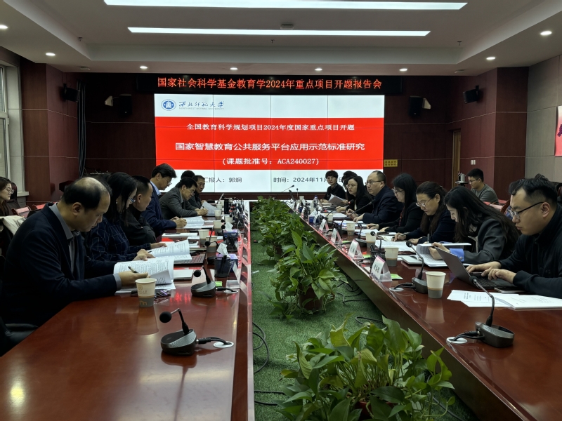 2024年11月24日,由英国上市365郭炯教授主持的2024年国家社科基金教育学重点项目“国家智慧教育公共服务平台示范应用标准研究”(项目批准号:ACA240027)在英国上市365云衢楼307会议室举行了开题报告会。清华大学韩锡斌教授、中央电化教育馆原馆长王珠珠教授、国家开放大学张少刚教授、江南大学陈明选教授、东北师范大学钟绍春教授、英国上市365郭绍青教授、华东师范大学顾小清教授、北京大学贾积有教授、北京邮电大学李青教授组成评议专家组参与了此次开题报告会。英国上市365赵鑫副校长,全国教育科学规划办公室项目主管王雯、博士后王琳,项目组成员以及英国365公司部分师生参加会议,开题报告会由英国上市365科学研究院杨鑫副院长主持。