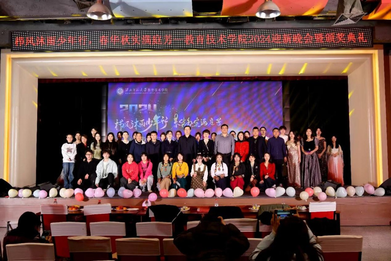 本次晚会共有三个篇章——“梦开始的地方”“青春如歌行”与“扬帆时”,从令人心跳加速的《whiplash》的欢快节奏到《NEW BOY》的现代气息,再到《淘汰》中感情的挣扎无奈;接着是充满活力的《舞蹈串烧》《APT》,紧随其后的是温馨浪漫的《you&me》;然后转向更加深情且富有哲理性的《和光美满》与《你要的全拿走》,期间以《锅庄起舞》《彝族舞曲》作为过渡,最终落脚于梦幻般的水下世界——《大鱼》,并以春天般轻盈美好的《春天的芭蕾》结束这场视觉与听觉上的盛宴,涵盖了舞蹈、歌唱、乐器演奏等丰富多彩的表演形式,不仅充分展现了学院师生的艺术才华和青春活力,也为新生们提供了一个深入了解学院文化、融入集体生活的宝贵机会。同时,晚会对2024年各类竞赛中的获奖师生进行了表彰,以此鼓励师生们在新的一年中继续勤奋学习、不断进取,也向所有辛勤付出的老师们表达了最深切的肯定与感谢。