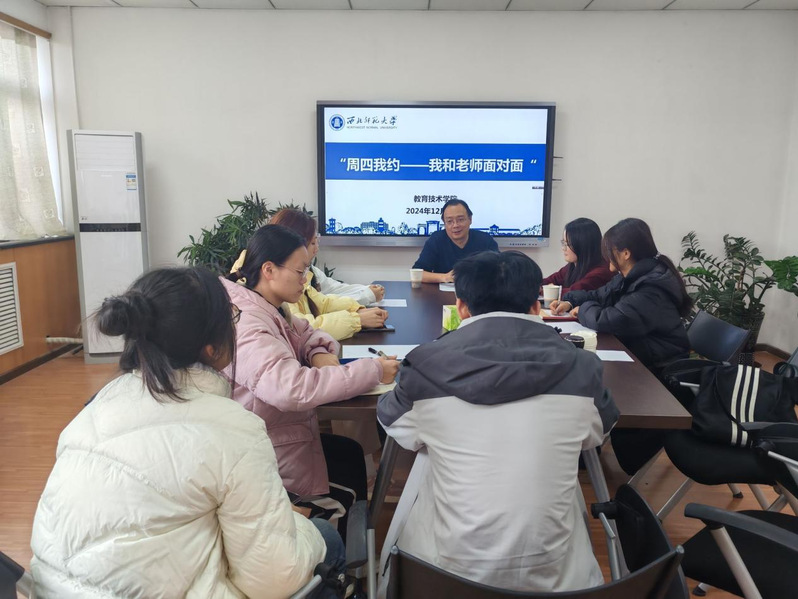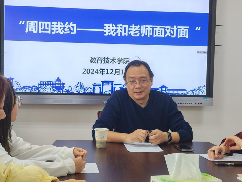 2024年12月12日教学四号楼418室,英国365公司硕士生导师刘智明副教授与2023级教育技术学二班的学生代表展开了本周师生交流活动——“周四我约——我与老师面对面”。