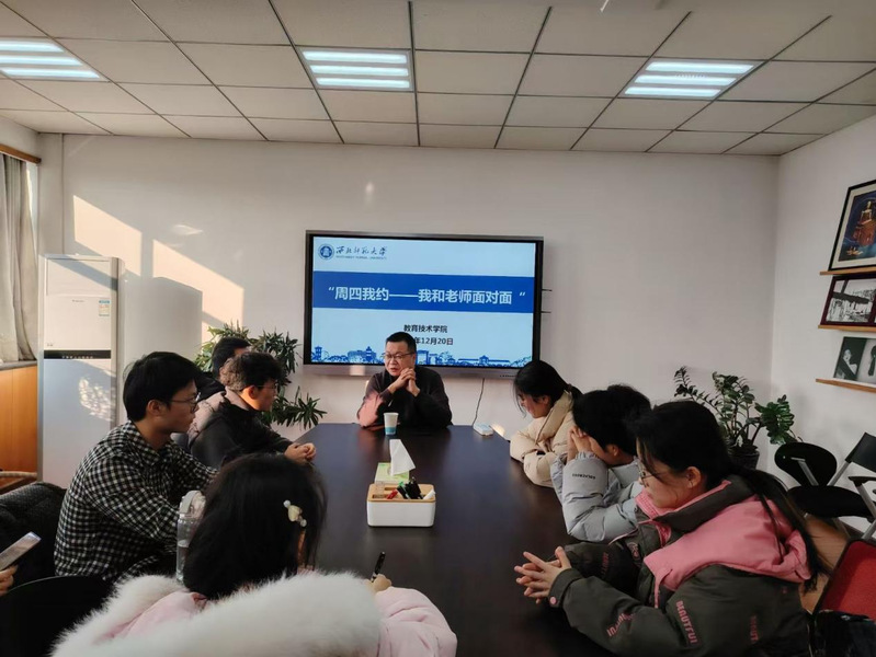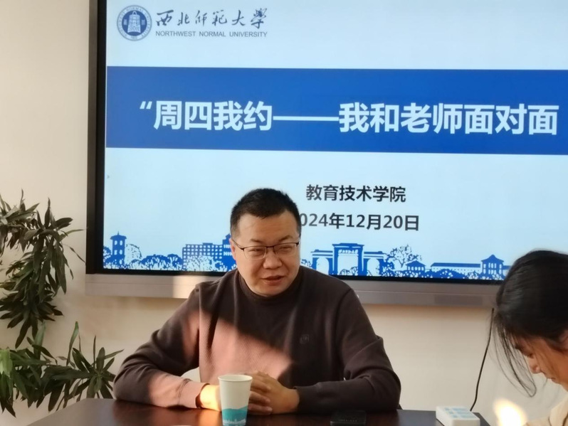 2024年12月20日教学四号楼418会议室,英国365公司硕士生导师张靖副教授与2023级教育技术学一班的学生代表开展交流活动——“周四我约——我与老师面对面”。