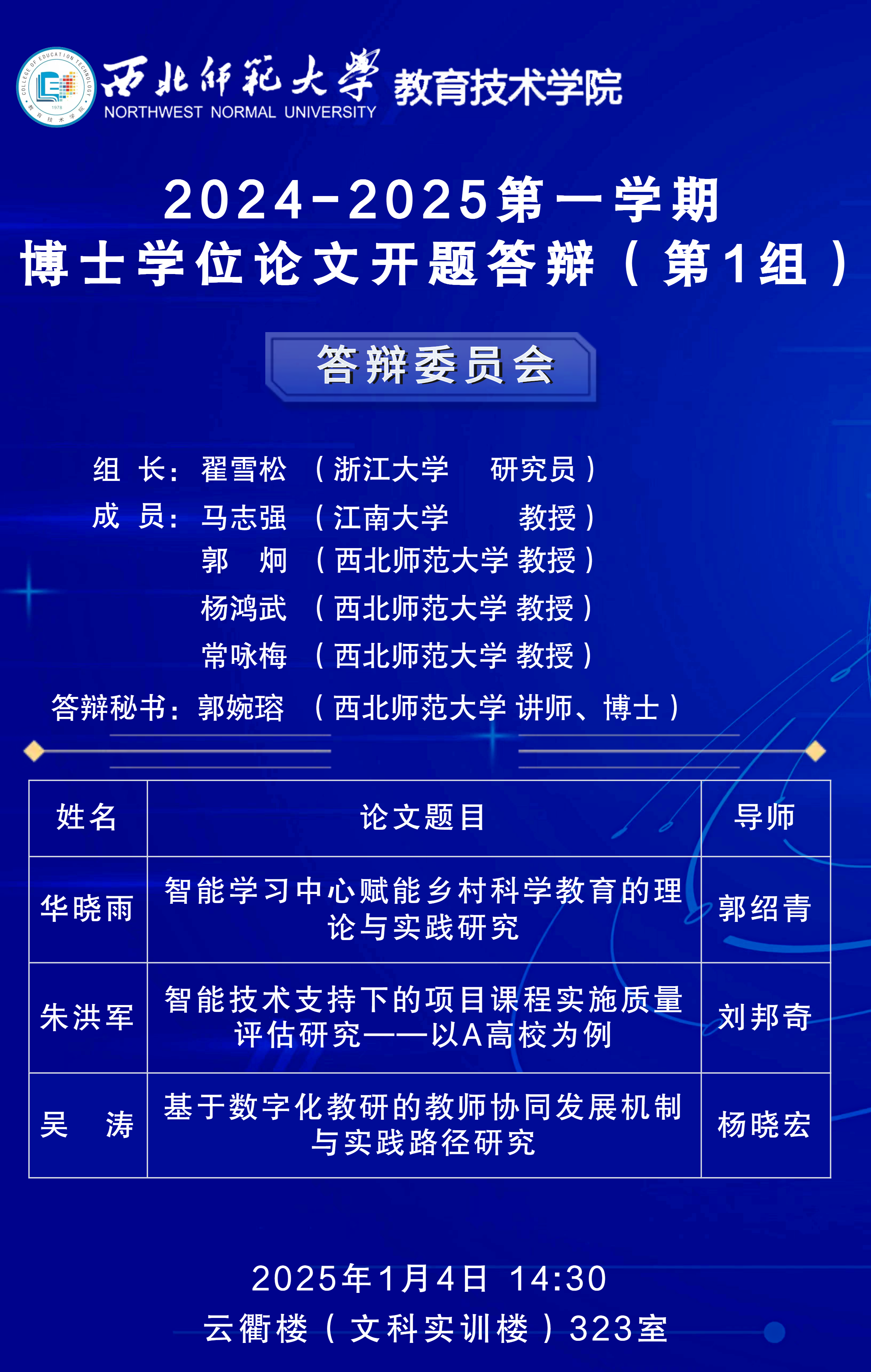 2024-2025第一学期博士学位论文开题答辩(第1组)