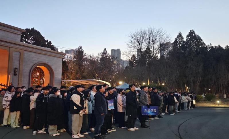 清晨7时20分,晨曦微露,由国旗护卫队队员组成的仪仗方阵踏着铿锵正步列队入场。擎旗手肩扛国旗,寒暑训练的印记凝结在挺拔的军姿中。随着《义勇军进行曲》激昂奏响,全场师生肃立行注目礼,齐声高唱国歌,凝视五星红旗在晨风中舒展攀升。在国旗升起的庄严的时刻,每个人的心底都激荡起一股澎湃的爱国情怀,全体人员以昂扬的精神面貌表达对祖国的无限热爱和崇高敬意。