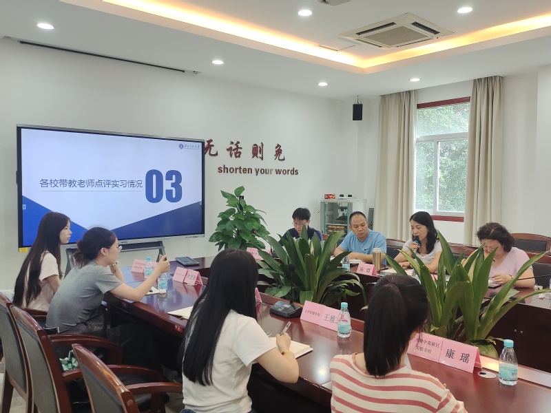 会上,来自十二所不同实习学校的学院现代教育技术专业硕士围绕实习期间的教学实践、班级管理、教研活动等方面展开汇报。他们分享了从初登讲台的紧张到逐渐从容授课的成长过程,讲述了与学生相处的点滴温暖,以及在教学反思中对教育理念的深化理解。精彩的汇报不仅展现了实习生们扎实的专业素养,更彰显出他们对教育事业的热爱与责任感。汇报后,各实习学校带教老师对实习生的表现进行点评。老师们从教学技能、课堂组织、师生沟通等维度进行了细致分析,既表扬了实习生们在教学设计创新、信息化教学手段运用等方面的亮点,也针对教学细节处理、课堂节奏把控等提出了宝贵建议。带教老师们的点评既有肯定鼓励,又有专业指导,让实习生们受益匪浅。