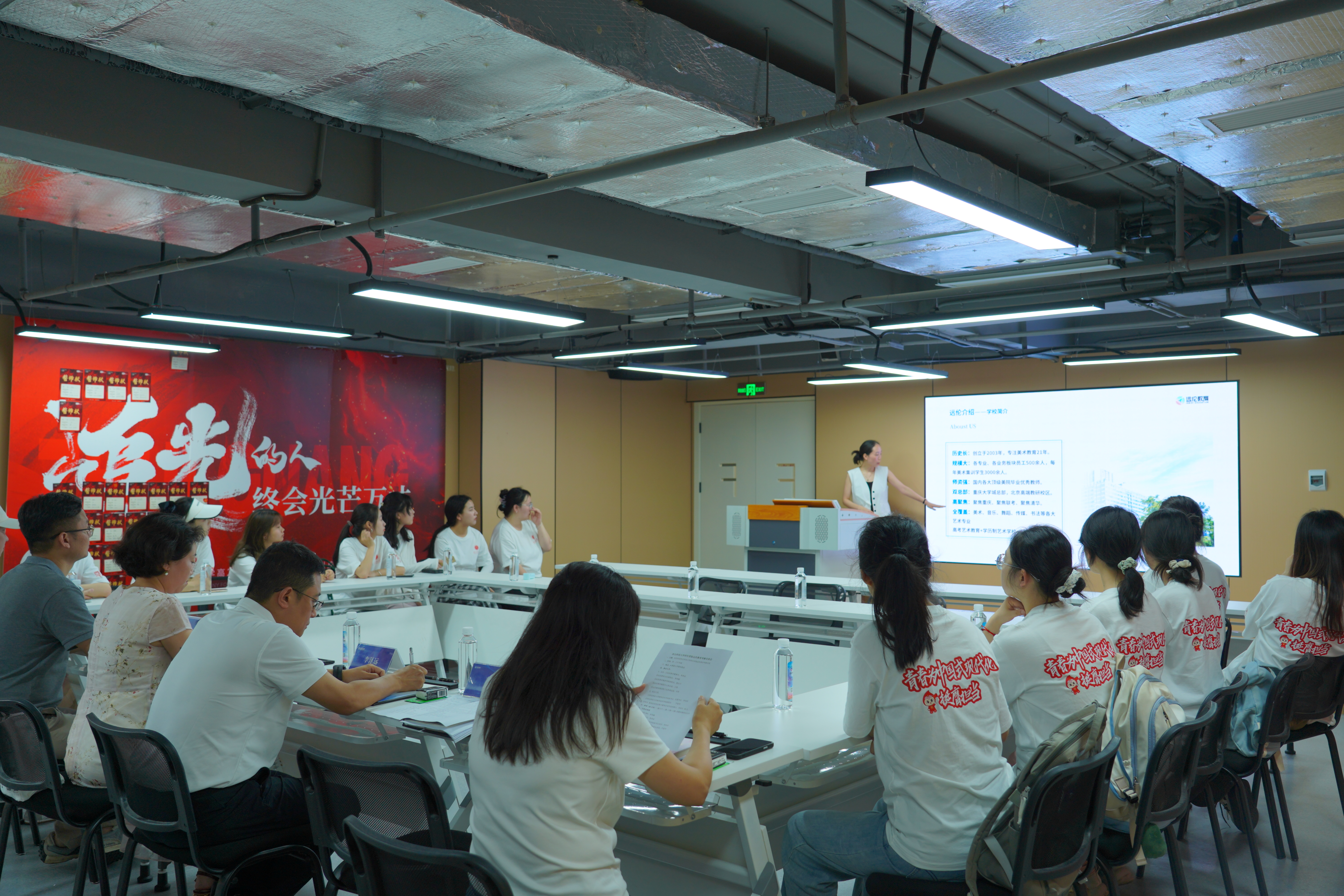 迈入远伦教育大厦,实践团成员步步惊叹、深受震撼。集团党委书记李利娜从远伦学校简介、管理模式、教学特色、办学成绩和未来规划五个方面,向实践团成员全面介绍了集团的运行管理系统。她结合具体案例,详细讲解了集团在师资队伍建设、课程体系搭建以及教学质量管控等方面的做法。李利娜的热情接待和详尽介绍,让每一位成员都收获满满,为大家未来的职业规划提供了宝贵参考。随后,实践团成员与公司高层管理人员进行面对面交流,深入了解了企业文化、管理模式以及艺术教育行业的发展趋势。