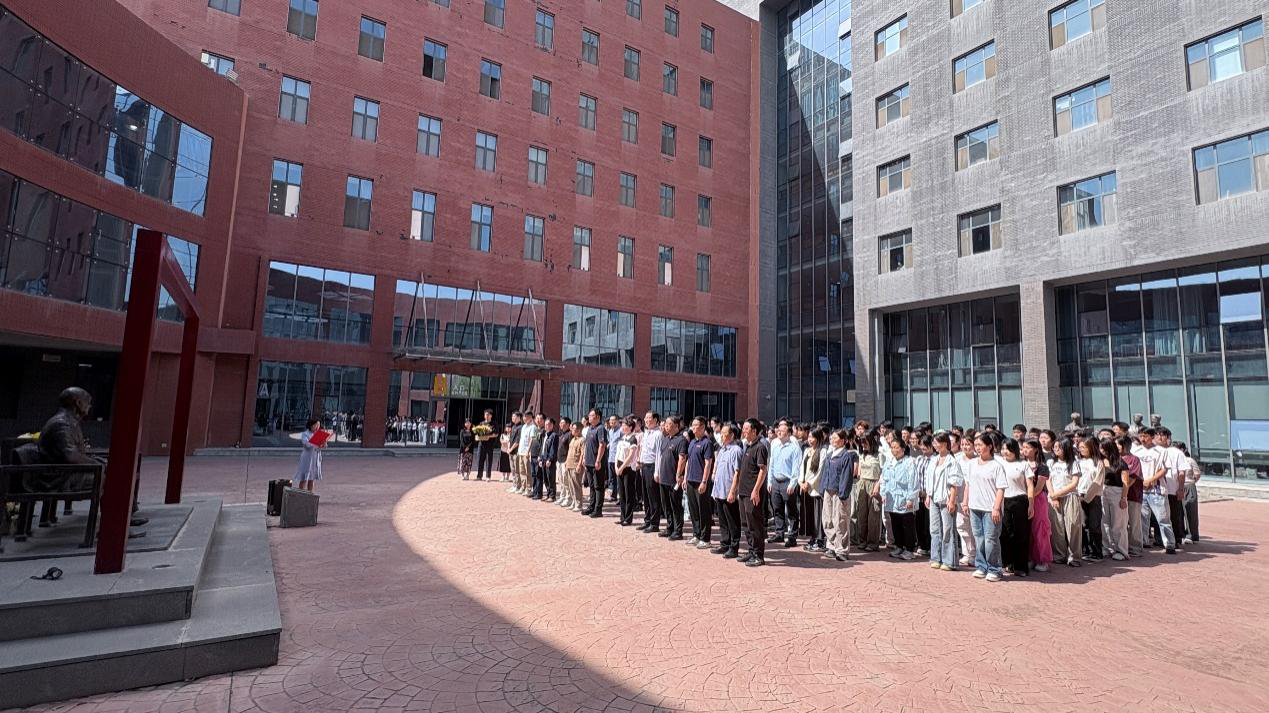 在庄严肃穆的氛围中,2025级新生代表缓步上前,向南国农先生塑像敬献花篮。随后,全体师生肃立,向先生塑像行三鞠躬礼,表达对先生深切的缅怀与崇高的敬意。