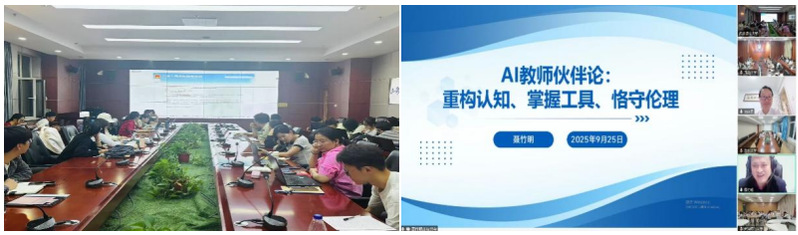 2025年9月25日晚,学院邀请安徽师范大学聂竹明教授在线作题为“AI教师伙伴论:重构认知、掌握工具、恪守伦理”的学术报告。我院教师及硕博士研究生参与并认真聆听了此次报告。