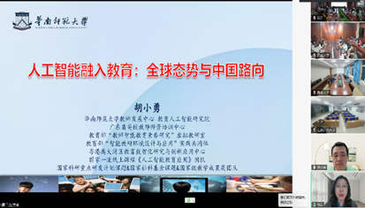 2025年10月16日晚,学院邀请华南师范大学胡小勇教授在线做题为“人工智能融入教育:态势路向与新质育才”的学术报告。我院教师、硕博士研究生参与并认真聆听了此次报告。