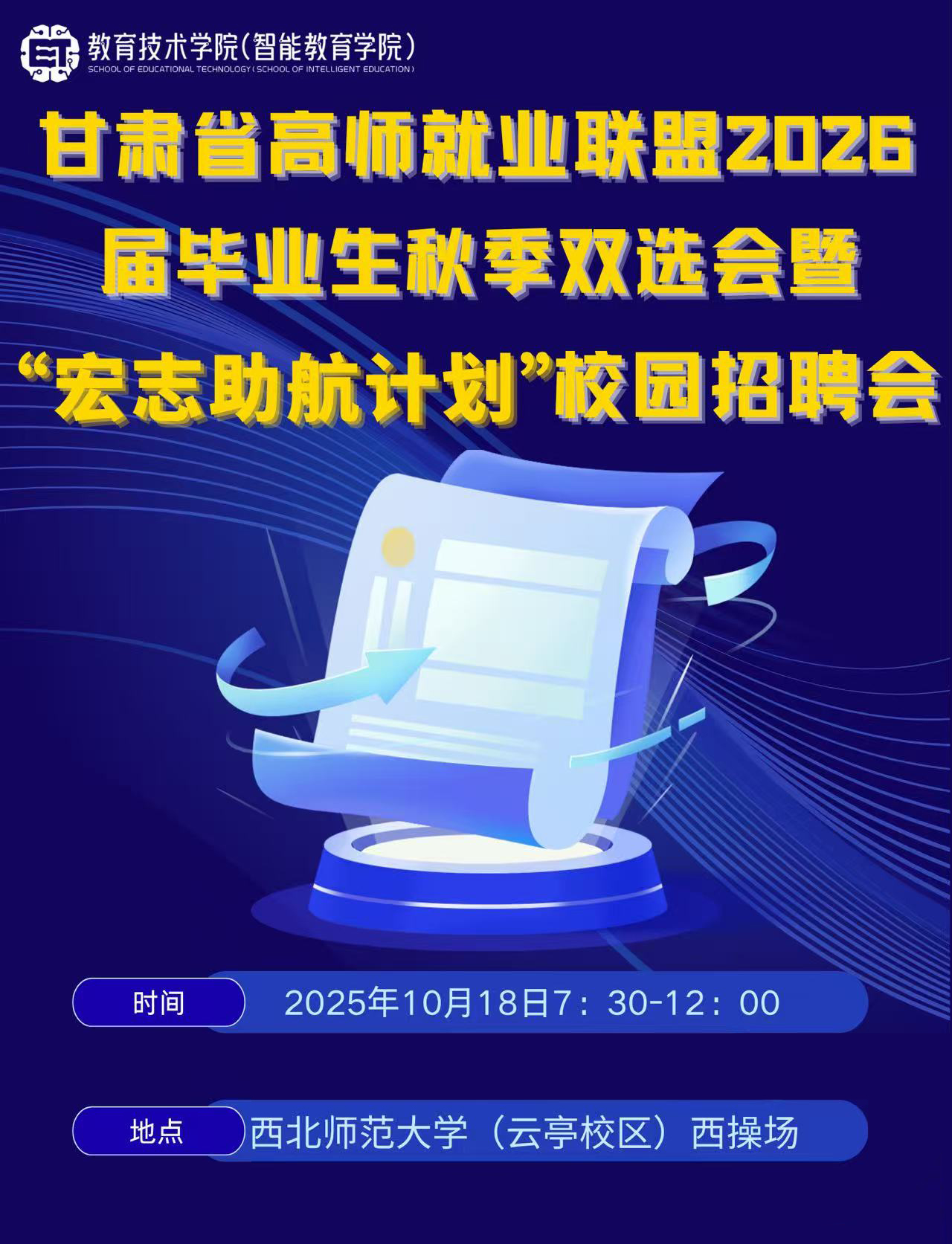 甘肃省高师就业联盟2026届毕业生秋季双选会暨'宏志助航计划”校园招聘会