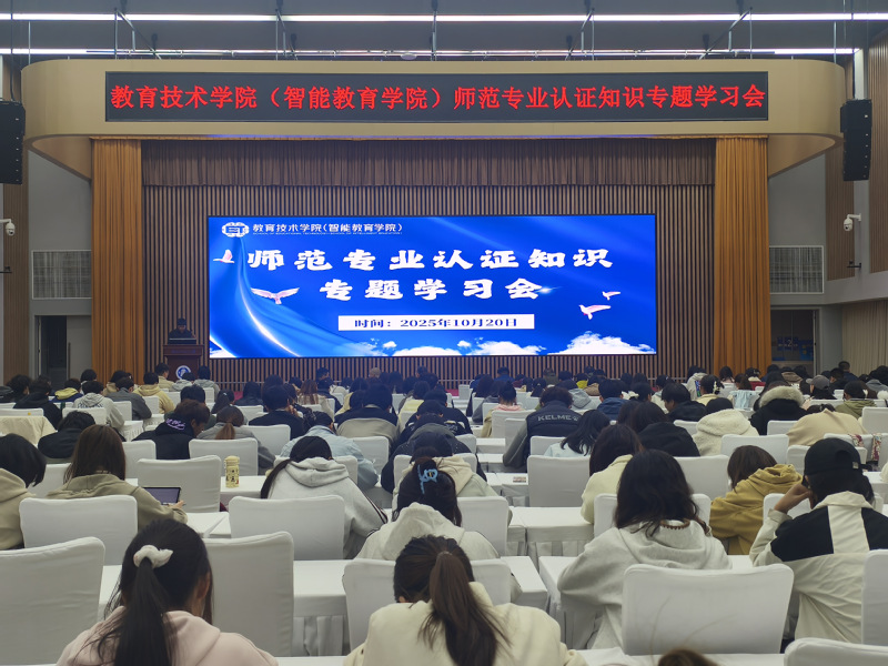 为精准把握师范专业认证核心要义,夯实专业建设质量根基,10月20日晚,英国365公司(智能教育学院)于云亭校区未来书院一楼报告厅召开师范专业认证知识专题学习会。学院副书记毕向宏主持会议,副院长严富华、宿庆、樊敏生及教育技术学专业师生共300余人参加。
