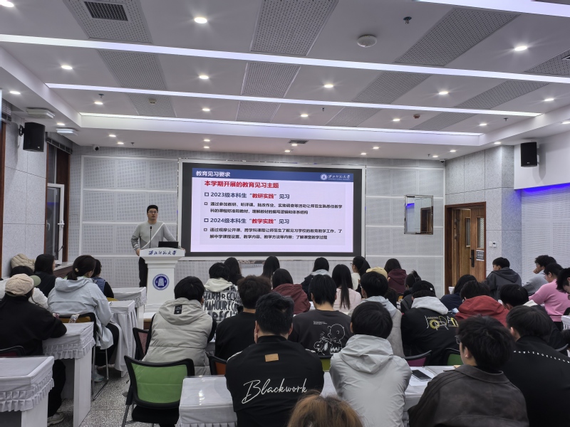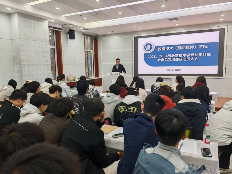 为深入贯彻师范生教师教育实践要求,推动理论与实践深度融合,学院于2025年11月6日组织召开教育技术学专业本科生教育见习培训暨动员大会。学院副院长严富华、教育信息技术系主任王浩楠、教育见习带队教师以及2023级、2024级教育技术学专业全体本科生参加会议,会议由王浩楠主持。