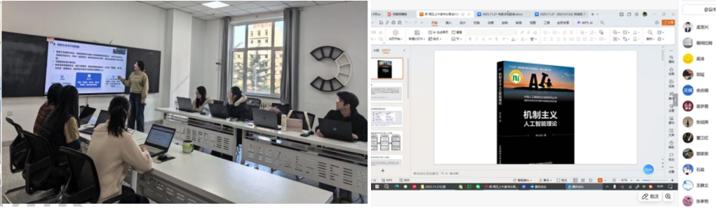 杨晓宏导师团队以“硕博共读”形式搭建交流平台,13名博士与9名硕士共同参与。博士生围绕《机制主义人工智能理论》解析AI全局模型,分享《生成式人工智能教育应用》的技术落地路径,结合《思考,快与慢》《自我突围》探讨思维模式与学术坚守,杨晓宏老师勉励团队以持续阅读夯实理论基础,在跨学段交流中拓宽视野。