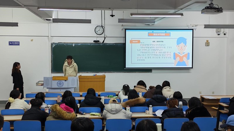 讲座伊始,高海燕老师以荀子“人无礼则不生,事无礼则不成,国家无礼则不宁”的经典论述为引,深刻阐释了礼仪在个人成长、事业发展与国家治理中的重要意义,并指出教师礼仪不仅关乎职业素养与学校形象,更直接影响育人成效与教育质量。在理论阐述中,高海燕老师系统解析了礼仪与教师礼仪的内涵,强调教师礼仪是教育工作者以优美仪态、规范语言和得体行为感染学生、树立楷模的基本职业规范;她着重剖析了教师语言在教学中的核心地位,指出语言素养是教师专业能力的重要组成部分,教师的语言艺术直接关系到课堂效率与学生认知发展,并对“语言”“言语”“教师语言艺术”及“教师口语”等概念进行了深入辨析,同时针对音量不足、语速过快、语调平淡、方言影响等常见教学语言问题提出了具体改进策略。为增强培训实效,讲座设置了语言能力实践环节,两名学员依次进行了自我介绍、即兴朗读和模拟课堂情境教学,高海燕老师逐一予以细致点评,并现场示范如何通过科学发声、清晰吐字、语调调控等方式提升语言感染力,随后组织全体学员开展了涵盖气息控制、共鸣调节、吐字归音、易错音辨析及语调节奏练习的系统训练。此外,高海燕老师结合正反案例阐述了教师忌语与课堂激励用语的使用原则,强调教学语言应体现教育温度与人文关怀;在仪表仪态部分,她从仪容整洁、着装得体、服饰搭配、举止端庄等方面详细讲解了教师职业形象构建的基本规范,并通过具体实例说明如何通过得体、专业的外在形象传递教师的亲和力与专业素养。